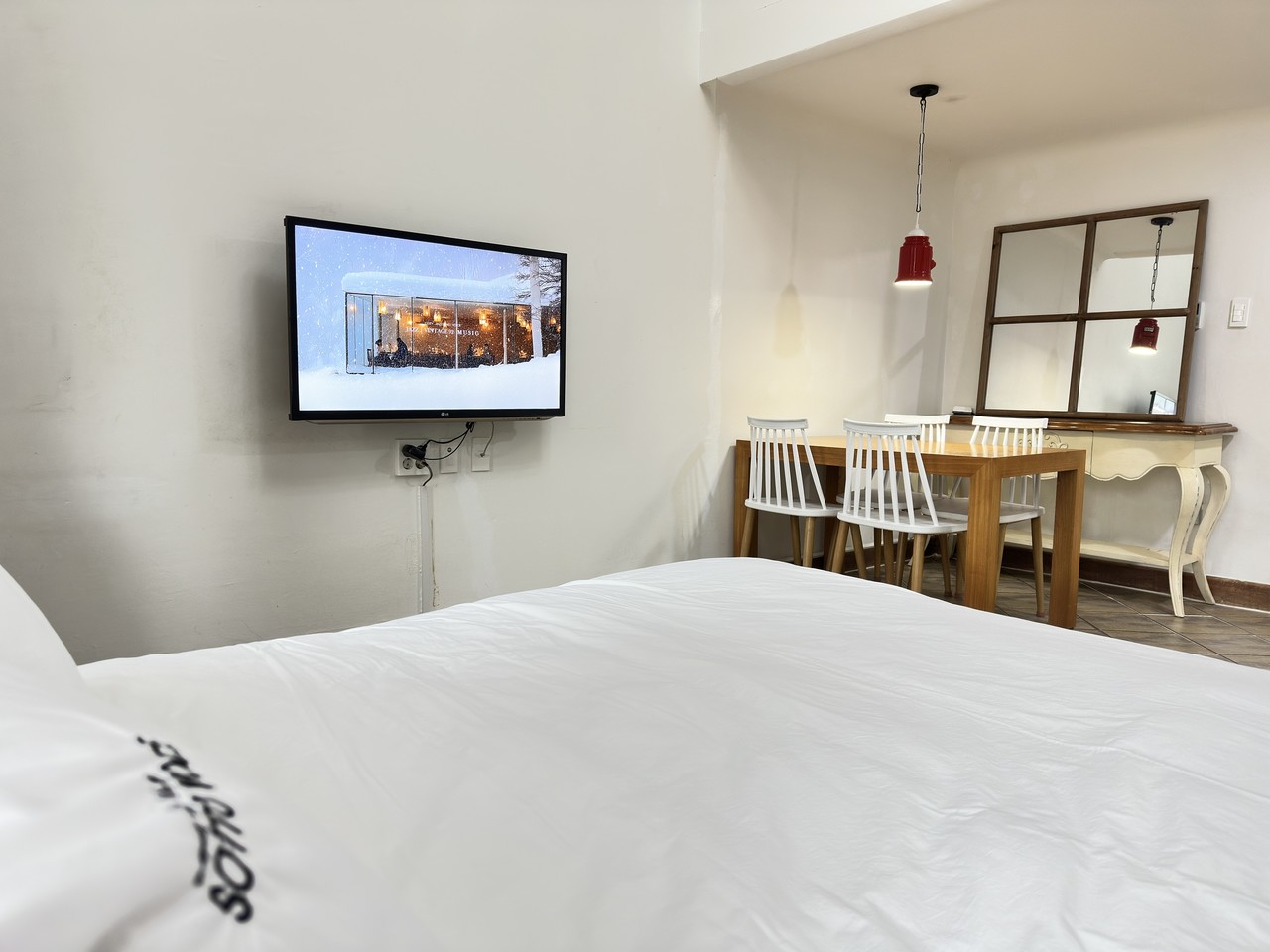 거실, 주방, 화장실1, 침대(퀸)1개, 복층 침대(퀸) 1개 기본 구성,