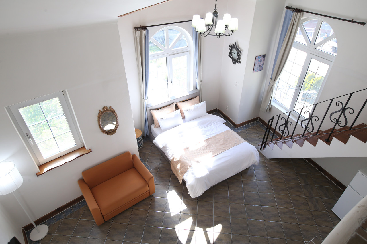 거실, 주방, 화장실1, 침대(퀸)1개, 복층 침대(퀸) 1개 기본 구성,