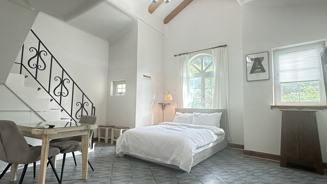 거실, 주방, 화장실1, 침대(퀸)1개, 복층 침대(퀸) 1개 기본 구성,