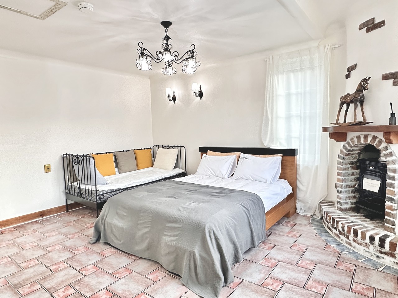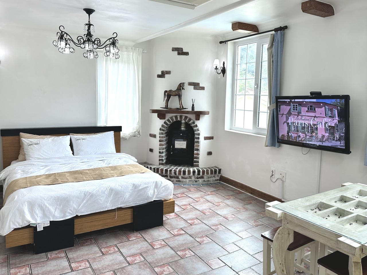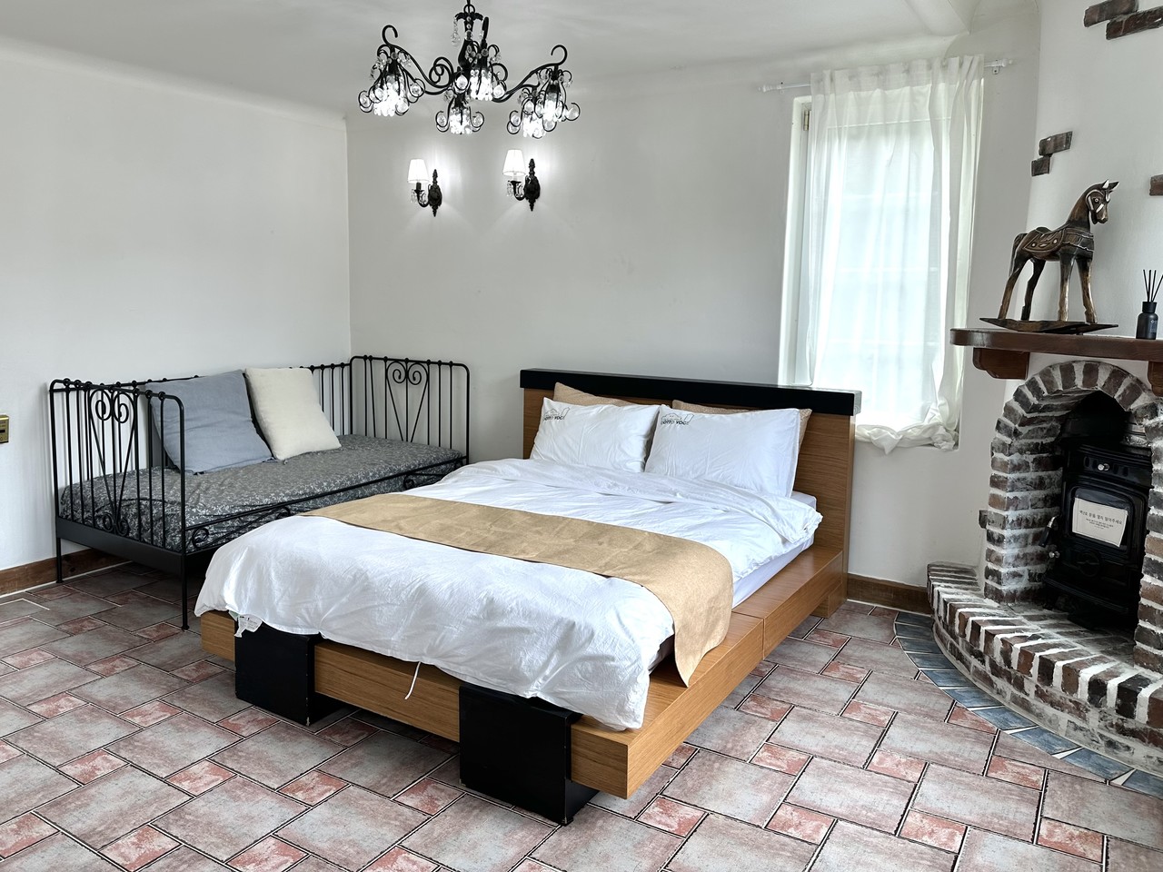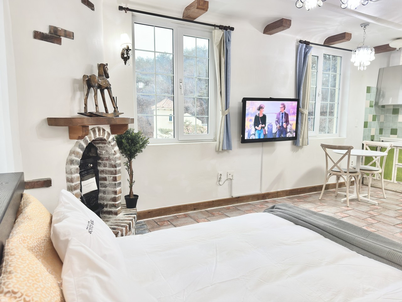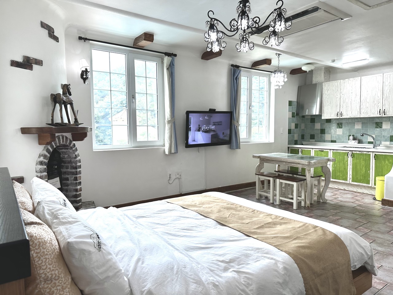 원룸형 : 거실, 주방, 화장실1, 침대(퀸)1개, 기본 구성, (2인 초과시 온돌 침구 제공)