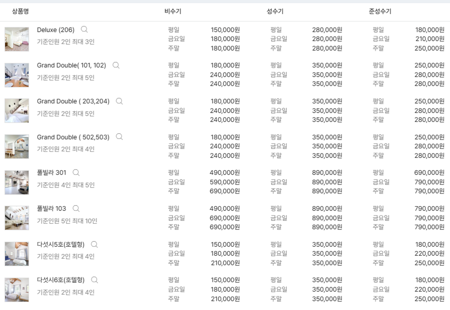 극성수기(주중/주말)